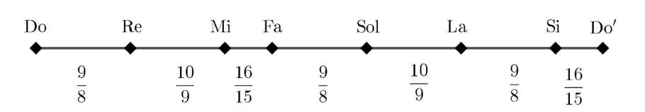 Oggi sappiamo che i suoni dipendono dalle frequenze di vibrazione: più la frequenza è alta più il suono è acuto. Se chiamiamo Do la nota emessa dalla corda intera, la nota emessa dalla mezza corda avrà frequenza doppia e verrà chiamata con lo stesso nome, con un apice per distinguerla: Do’. L’intervallo tra i due Do prende il nome di ottava (i greci chiamavano quest’intervallo diapasòn, e i nomi delle note risalgono in realtà all’XI secolo, ma per comodità userò sempre i nomi moderni, sia per le note che per gli intervalli). Il rapporto tra le frequenze è l’inverso del rapporto tra le lunghezze delle corde. Il suono che ha frequenza 3/2 di quella del Do è un Sol e l’intervallo è una quinta, mentre il suono che ha frequenza 4/3 è un Fa e l’intervallo una quarta. Questa scoperta influenzò enormemente non solo il pensiero pitagorico – portando alla convinzione che i numeri (naturali) e i loro rapporti fossero alla base di tutta la realtà – ma anche gli sviluppi successivi della musica e della matematica greche. In fondo questa è la prima di quelle strabilianti connessioni tra matematica e scienze a cui Wigner, nel 1959, si riferirà con l’espressione “irragionevole efficacia”.